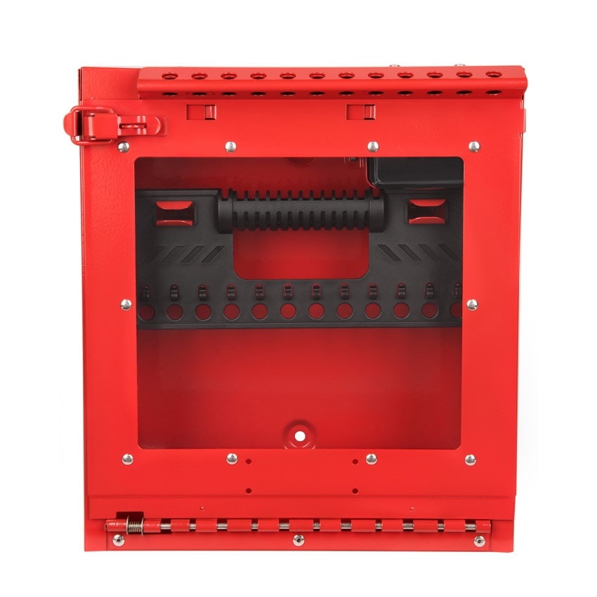 La boite de consignation de groupe permet de stocker 12 cadenas et leurs clés sur la poignée de condamnation amovible. Le contenu de la boite est facilement vérifiable grâce à sa fenêtre en polycarbonate anti-chocs.